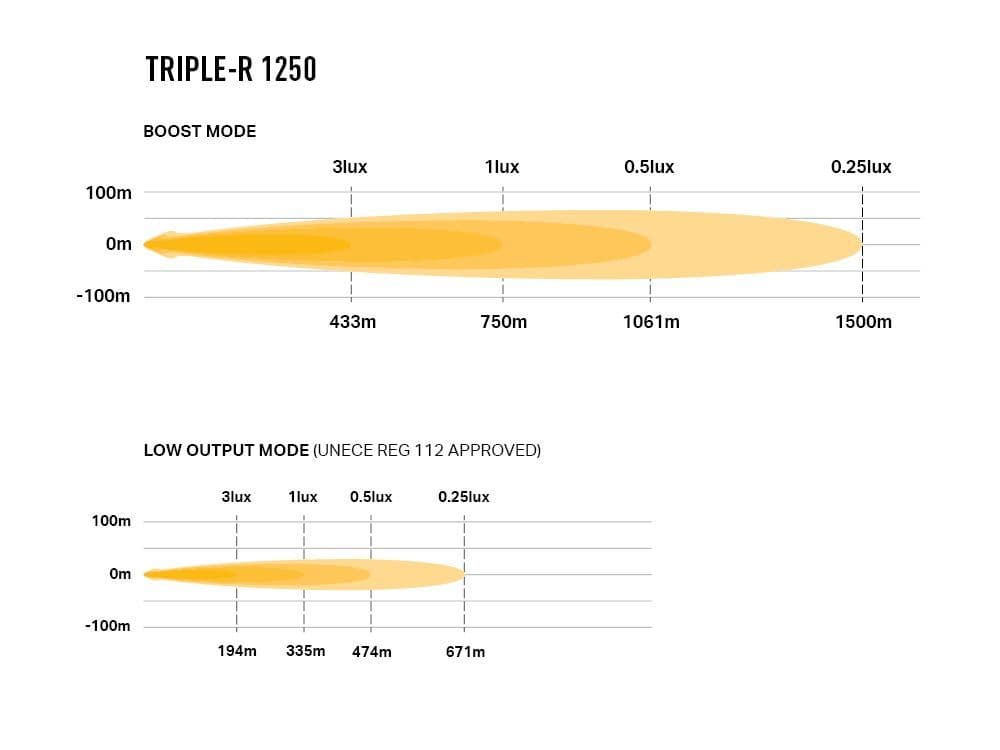 UNECE Reg 149 Class B Driving Light, approved for on-road high beam (Dual-output technology via flash-to-dim)