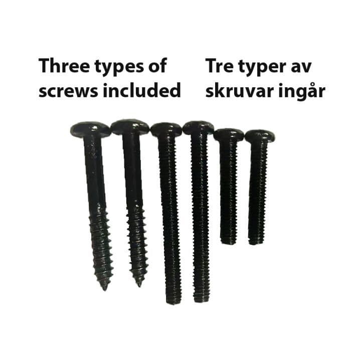 Three different types of screws are included for different mounting options (two per type):