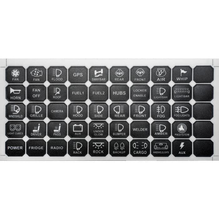 10. Backlit switches with selectable backlight color.