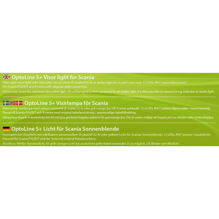 LEDSON OptoLine S+ Fiber optic position light for Scania sun visor (White and Amber)